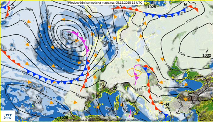 Obr.1: Synoptická situácia – piatok (5. 12.)